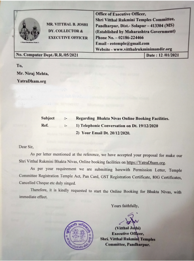 Before the launch of YatraDham.Org devotees used to make advance bookings either by calling and transferring money online or by reaching there directly and checking on availability. In both these cases they were facing many problems along with anxiety and insecurity.