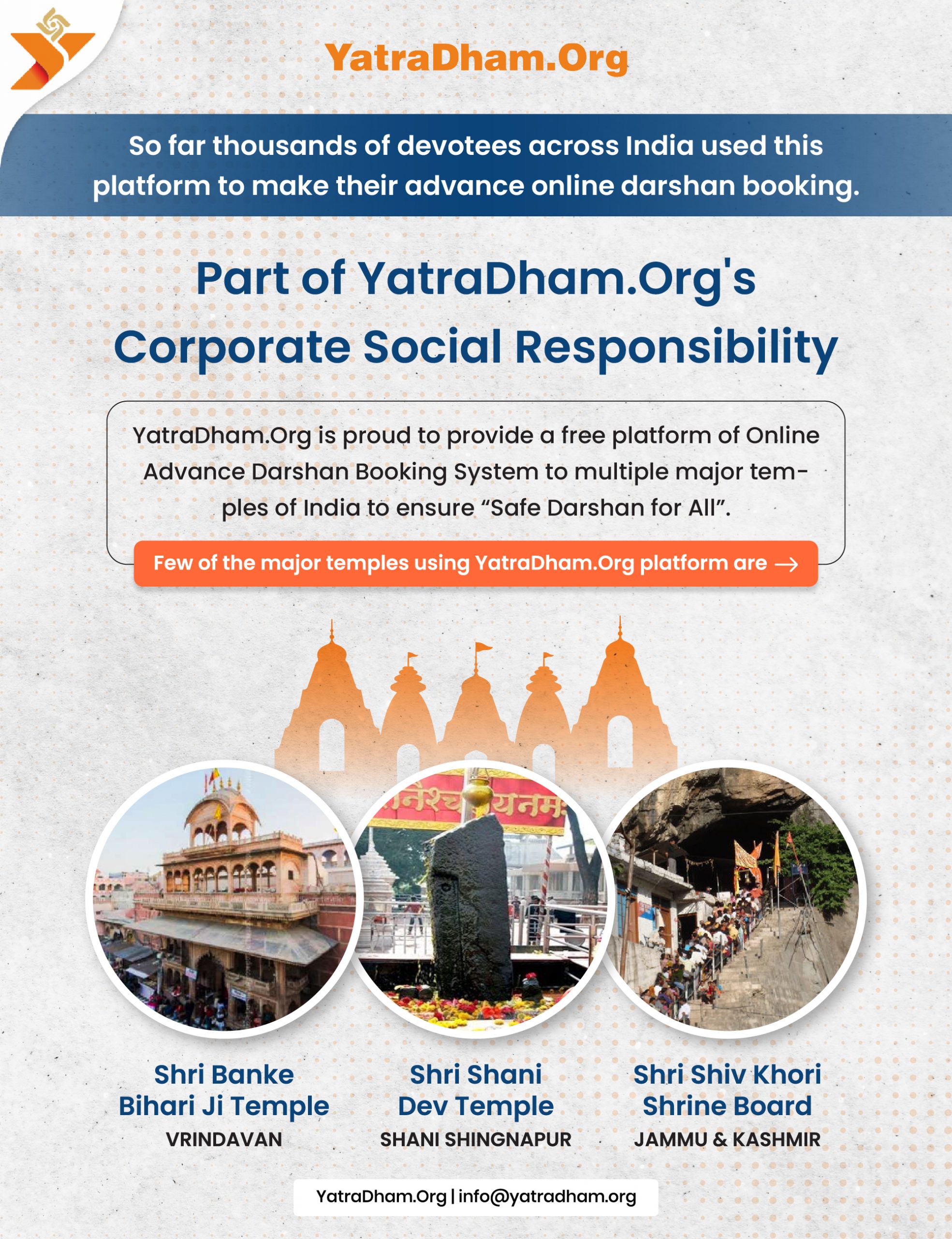 All that has changed. Now, travellers first check all details, facilities and photos online. They then make bookings online on YatraDham.Org well in advance ensuring peace of mind while traveling and when they reach their destination.